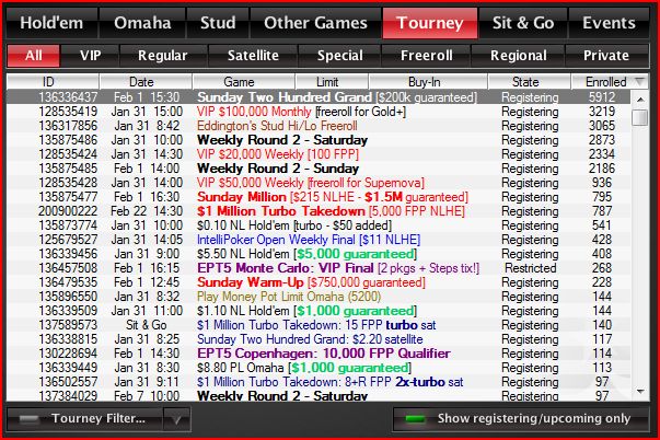 Just check out the screen shot below of the Pokerstars tournament lobby...